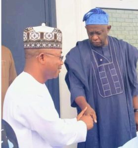 L-R: Governor Ododo welcoming Sen.Karimi at his residence in Lokoja on Saturday.