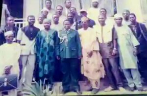 The first Military Administrator of Kogi State,Col.Danladi Zakari, flanked by the pioneer journalsts in a group photograph in Lokoja 34 years ago.