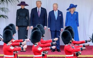 Knowing that Trump is obsessed with Britain’s royals and loves showy displays of pomp, the military welcome was even bigger than when Queen Elizabeth II hosted Trump on his previous state visit in 2019.
